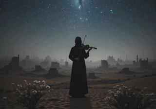 ذكرى حزينا يعانق عزف الكمان روحه يتذكر صباه وتراب قريته وبحيرتها ونخيلها ورغيف أمه وسحر عينيها ودفئها وهي
