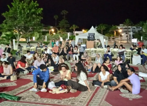 ” حيرة العاشق ” المتمثل في التساؤل الدال على الحيرة : ” هل هي الأزهار ؟ ”