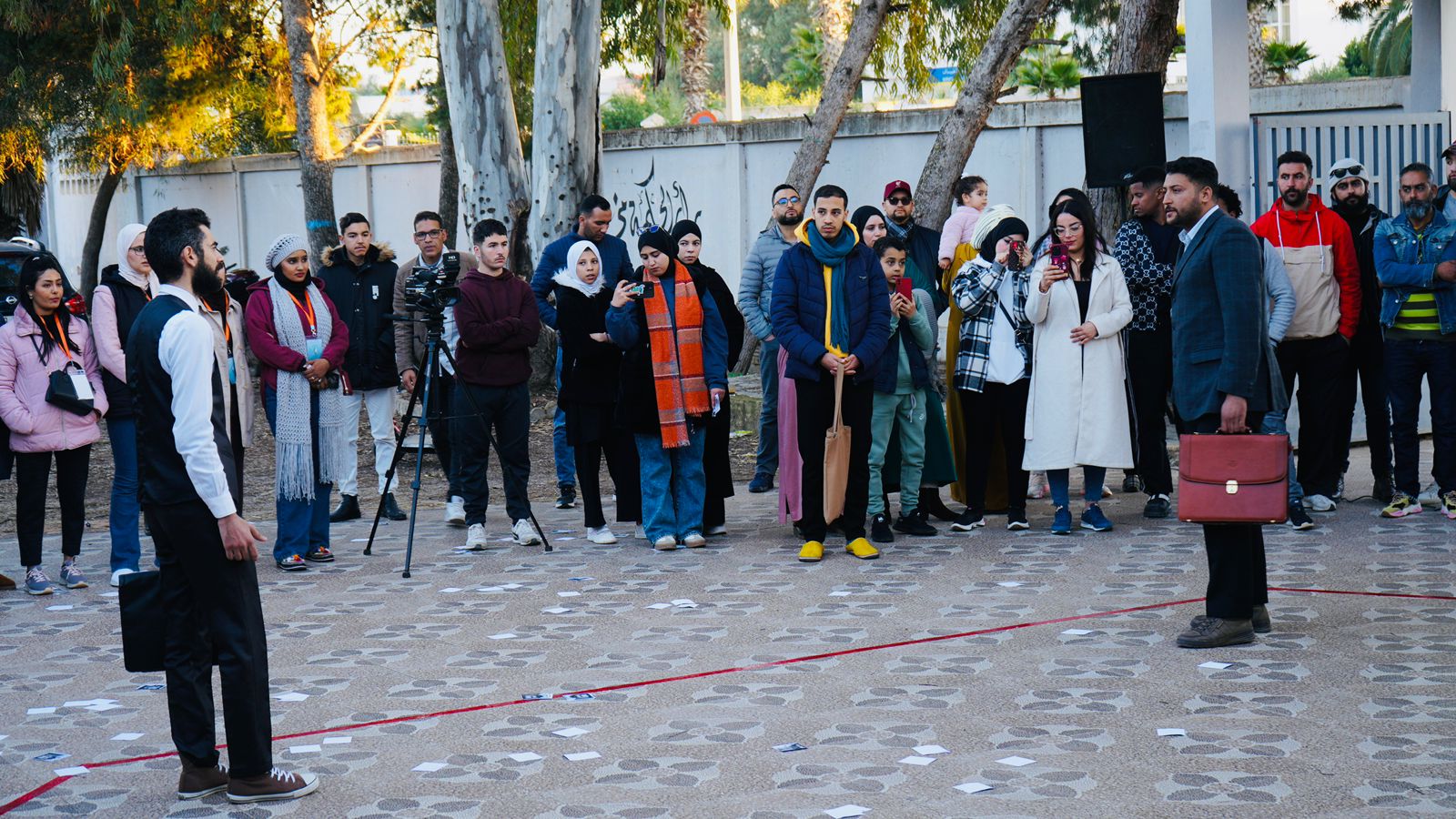 وما إن تنتهي المغنية من غنائها حتى يهبط الممثلان من السطح، فنزول الشخصيات من “العلو” إلى “الأرض”، من المسافة المجازية إلى التماس الحي مع الجمهور، كأنها إعادة تشييد للحكاية من الأعلى نحو الأسفل، من المتخيل إلى الواقعي، هنا يتحقق جوهر مسرح الشارع، حيث لا تبقى الشخصيات محصورة في فضاء مغلق، بل تندمج ضمن النسيج الاجتماعي، في عملية تفكيك رمزي للحدود بين المسرح والحياة.