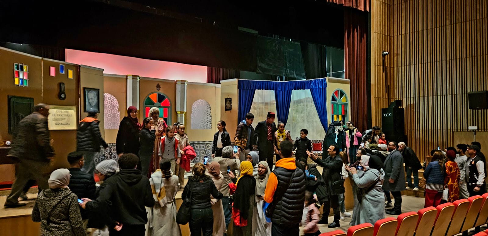 لم تمنع موجة برودة الطقس التي تعرفها عدد من جهات المغرب الحبيب، أعضاء الفرقة من معانقة جمهور هذه المدن الجميلة، العاشق للفرجة المسرحية الهادفة، فهناك، بين جنبات المركز الثقافي “المنصور” بجماعة يعقوب المنصور بالعاصمة الرباط، كان اللقاء حميميا دافئا مفعما بالحب والاعجاب بين أعضاء الفرقة والجمهور الذي حج لمتابعة العرض المسرحي بأعداد كبيرة ،فكانت المتعة والتجاوب عنوانا لهذا اللقاء الحميمي، الذي جمع عددا من الفعاليات المسرحية المحلية، والفعاليات الجمعوية، وباقي ساكنة المنطقة من أطفال وشباب ونساء ورجال، بحيث ضاقت قاعة المركز الثقافي بأعداد المتفرجين رغم شساعة الطاقة الاستيعابية للمركز، والتي تتعدى 800 كرسي.