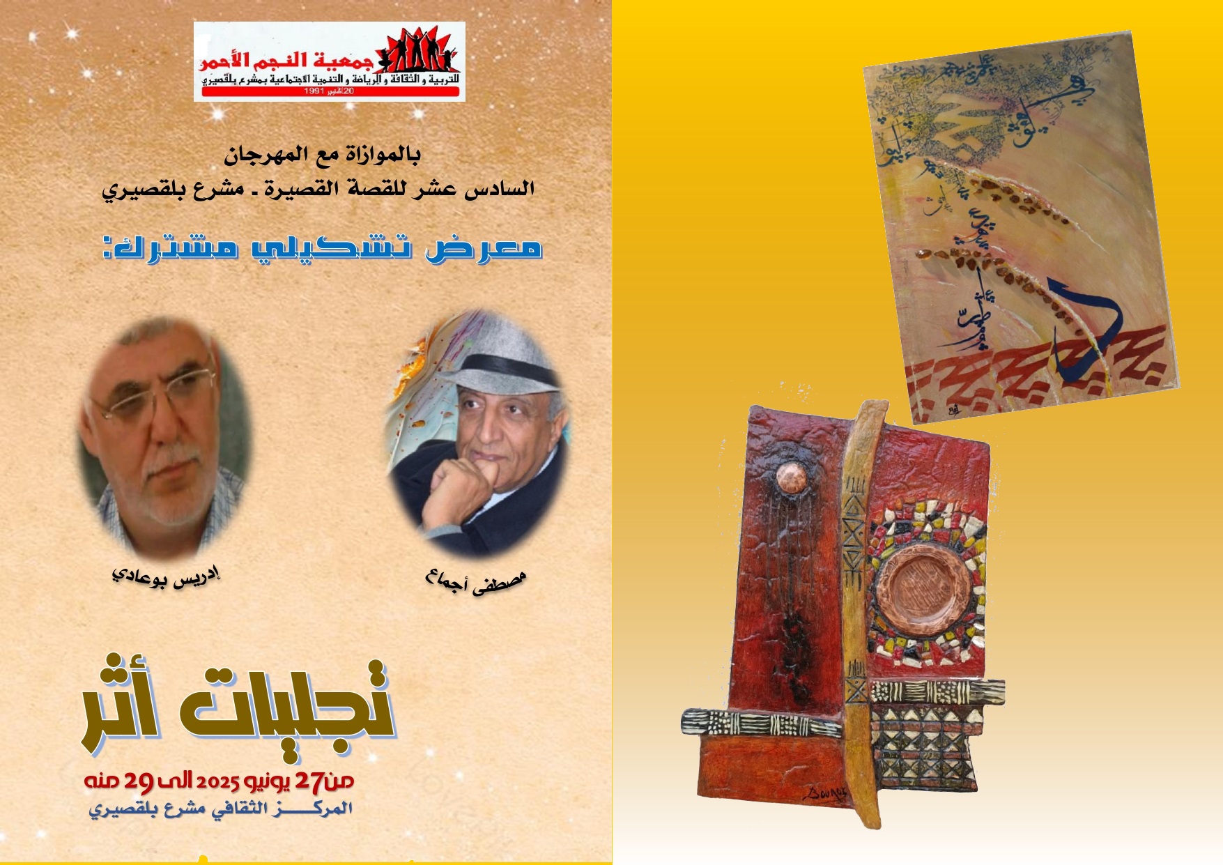 بالموازاة مع النسخة 16 لمهرجان القصة القصيرة بمشرع بلقصيري، يحتضن المركز الثقافي للمدينة معرضا تشكيليا مشتركا للفنانين مصطفى اجماع وادريس بوعيادي، ما بين 27 و29 يونيو الجاري وكتب الفنان مصطفى أجماع في تقديم المعرض على الكاتالوغ ، تحت عنوان “تَجَليَّاتُ أثَرٍ، دع عينك تشاركك القراءة، فلغة العيون أبلغ”: