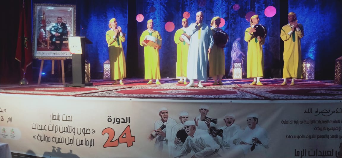 كما كان للمشاركين موعد مع عرض لوحة فنية موسيقية تراثية لمجموعة عبيدات الرما أولاد عطوش وادي زم، ومجموعة نجوم السلطان لعبيدات الرما خريبكة، مع تكريم قيدوم الرما السيد محمد دراك من إقليم الفقيه بن صالح، حيث سلمه درع التكريم السيد المصطفى الحصار الكاتب العام لعمالة إقليم خريبكة، وتكريم السيد المعطي قنطارمن إقليم خريبكة. حيث سلمه درع التكريم السيد الحسن الشرفي المدير الجهوي لقطاع الثقافة بجهة بني ملال خنيفرة، مع تقديم عرض فني تراثي لفرقة الركادة من وجدة(ضيف شرف الدورة).