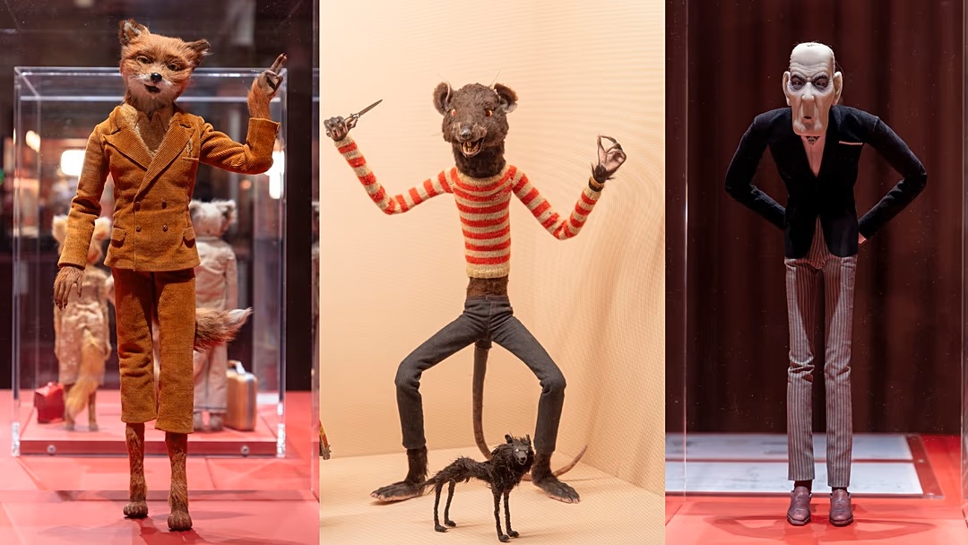 كما يعرض المعرض مجموعة من الدمى الأصلية بتقنية إيقاف الحركة من فيلم “The Life Aquatic”، بينها القرش الآلي المميز بطبعة الفهد، وشخصية السيد فوكس ببدلته المخملية، والكلبة “Nutmeg” ضمن ديكوراتها المصغّرة. ويجد الزائر أيضًا آلات البيع من فيلم “Asteroid City”، ومعطف الفرو من “FENDI” الذي ارتدته غوينيث بالترو في “The Royal Tenenbaums”.